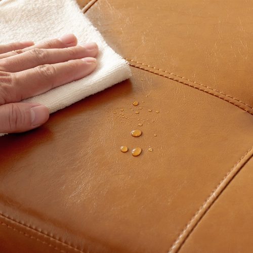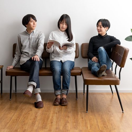 座面には合成皮革を採用しており、汚れても簡単にお手入れできるのが魅力。構造部材には天然木を使用しているため、使い込むほど味わいが深まります。