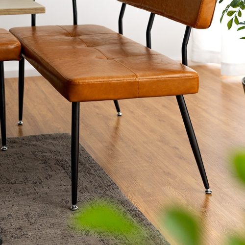 約幅96cmと2人掛けサイズのダイニングチェアです。背もたれなしのため、横や後ろからも自由に出入りできます。座面には丈夫なPVCレザーを採用しており、お手入れも簡単。クッション付きのため、長時間座っても痛くなりにくいのが魅力です。