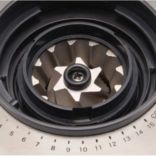 21段階の細かい粒度調整が可能なコーン式の電動コーヒーミル。硬化ステンレス製のダブルギアコーン式挽き刃により、エスプレッソ用の極細挽きから粗挽きまで対応します。低速回転設計のため、コーヒーのアロマを引き出しやすいのがメリットです。