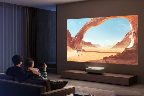 自宅で本格的なシアター体験ができるプロジェクター。IMAX Enhanced認証とDolby Visionに対応しており、繊細な色彩とリアルな映像を表現できます。壁からわずか18cmで100インチの大画面を実現できる、超短焦点設計が魅力です。
