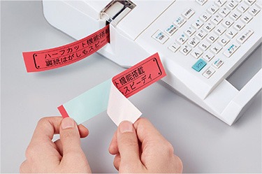 98種類のデザインフォームを搭載したラベルライター。店頭POPから注意喚起まで、さまざまなシーンに対応する豊富なテンプレートで効率的なラベル作成ができます。漢字3書体、かな5書体、英数5書体に対応し、用途に合わせて印象的なラベルをデザイン可能です。