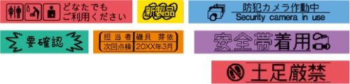 4~24mm幅のテープに対応し、さまざまなシーンでラベル作成ができます。豊富な絵文字と記号を搭載しており、整理整頓から案内表示まで幅広い用途に活用が可能。初めてラベルライターを使う方にもおすすめの製品です。