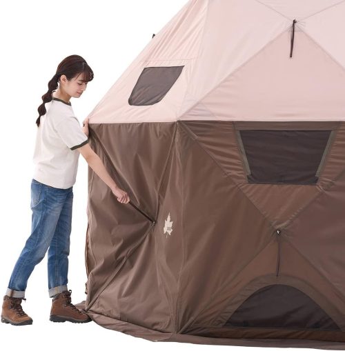 大きな出入口に加えて、テント上部には3箇所のベンチレーターを搭載。大型メッシュウィンドウも設けているため、優れた通気性を発揮します。ダッフル型の収納ケースが付属しているので、持ち運びや保管に便利。幅広いシーンで活躍するおすすめモデルです。