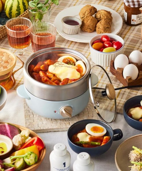 煮る・焼く・蒸す・炊くをこなす1台4役の卓上電気鍋。1~2人分にちょうどよいコンパクトサイズで、幅広い料理が楽しめます。鍋限度量は約800ml。サイズは230×195×200mmで、テーブル上でも場所を取りにくい設計です。