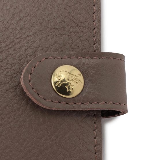 フロントに象徴的なバッファローの刻印が施された、おしゃれなシステム手帳。輝くゴールドのスナップボタンがアクセントになっており、中身をしっかりホールドできます。飽きずに長く愛用できるデザインなので、ギフトにもおすすめです。