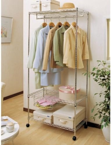 クリアコーティングを施し防錆効果を高めた設計が魅力。ポール径約25mm、サイズは約幅91.5×奥行46×高さ178.5cmで、リビング・キッチン・納戸などさまざまな場所に設置しやすい大きさです。また、キャスターが付属しているので、移動もスムーズに行えます。大容量の収納スペースを求めている方におすすめのモデルです。