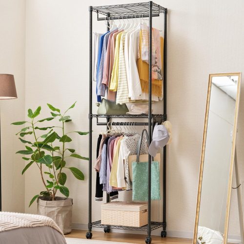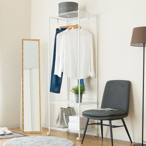 3段の棚板が付いており、衣類以外のバッグや小物もまとめて整理が可能。キャスター付きでスムーズに移動できるため、掃除や模様替えのときに便利です。ホワイト・ブラック・ベージュなど豊富なカラーバリエーションもうれしいポイント。クローゼット代わりの収納を探している方におすすめのモデルです。