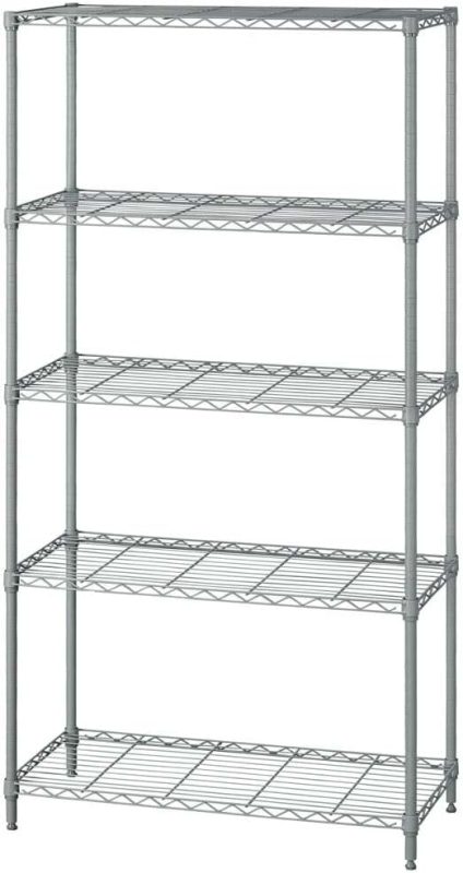 5枚の棚板を好みの高さに調整できるスチールラック。幅120×奥行46×高さ183cmのサイズで、オフィスのデスクまわりから倉庫まで幅広く対応します。フレームはスチール製で粉体塗装を採用しており、耐久性も良好です。