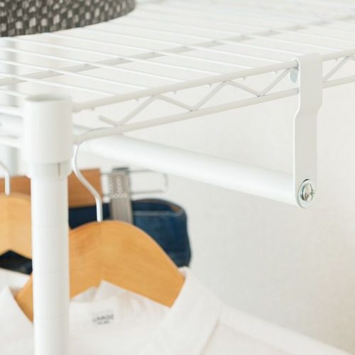 棚板だけでなく、衣類を掛けるためのパイプが組み込まれたタイプです。ジャケットやシャツを畳まずに収納できるため、洗濯後の片付けがスムーズに行えます。収納ケースと組み合わせれば、自分だけのワードローブを作れるのが魅力です。