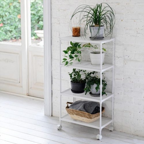 棚1枚あたり30kgまで耐えられる頑丈な構造。スチールに粉体塗装を施しているので錆びに強く、さまざまな場所で使用できます。おしゃれなカラーバリエーションにも注目です。