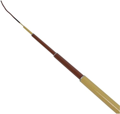 グリップには毛糸が巻かれており、膨らみのある形状。握りやすく、寒い時期でも冷たくなりにくい仕様です。穂先やジョイント部の朱塗りが視認性を高め、デザインのアクセントにもなっておしゃれに使えます。