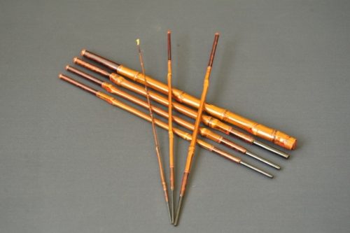 継ぎ方によって使い勝手が異なるのもタナゴ竿の特徴です。元竿となる持ち手の部分にすべてのピースが収納できる「振り出しタイプ」は、コンパクトで携帯に便利。さらに、使用時のセッティングがスムーズにできるのがメリットです。