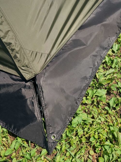 TC素材を採用したミリタリー風パップテント。ポリエステル65%とコットン35%の混紡生地により火の粉に強く、焚き火を楽しめます。