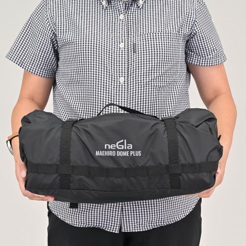 重量約860gと軽量で、収納サイズは38×14cmとコンパクト。間口205×奥行90×高さ105cmのゆったりとしたサイズで、前室も備えています。入口を跳ね上げればタープとしても使用できるのもポイントです。