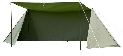 ポールを使わないパップ型テント。トレッキングポールや木の枝、クライミングロープなど身近なモノを活用して設営します。自分仕様にアレンジできる自由度の高さが魅力です。