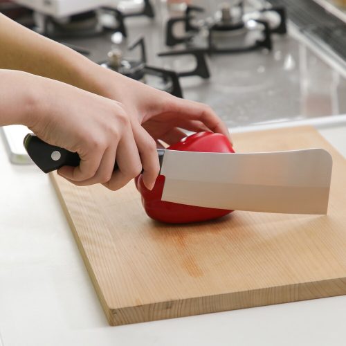 刃の幅が広いため、切った食材を刃の上に乗せて鍋などに移すスクレーパーとしても活用できて便利。製品のラインナップも豊富なので、自分に合った1本を見つけやすいのがポイントです。