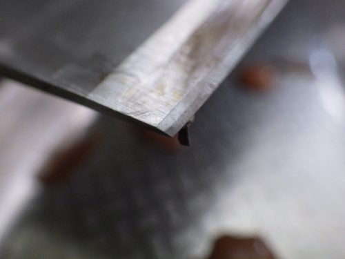 刃の反対側に「バリ」という金属のめくれが出たら、刃先まで研げているあいず。最後に表側・裏側どちらも刃先を1回ずつ研いで仕上げましょう。