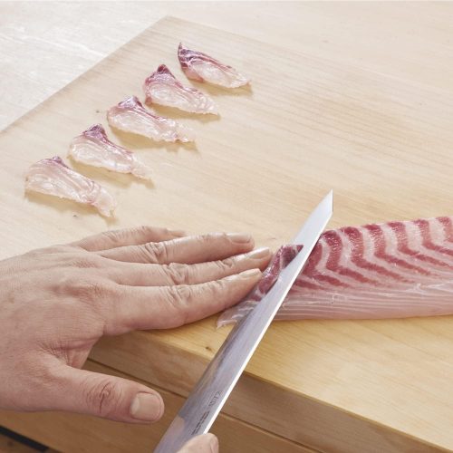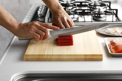 刃渡りが長く、ひといきで切れるのもポイント。刺身の柵やローストビーフなどを切るのに適しています。断面が美しく、素材の味を損ないにくいのがメリットです。