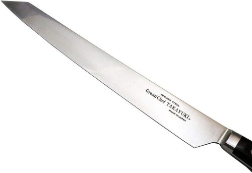 多くのシェフに愛されている「グランドシェフ」シリーズの柳刃包丁。ブレードには、スウェーデン・ウッデンホルム社のステンレス鋼材を使用しています。
