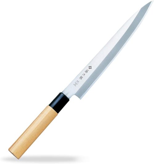 柳刃包丁は、刺身を美しく切るために作られた日本の伝統的な包丁です。「刺身包丁」という別名でも知られ、魚を薄く滑らかに切るのに適しています。柳の葉のように細長く優雅な形状が、名前の由来です。
