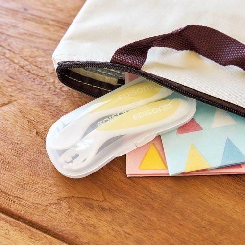 外出時の離乳食に便利なケース付きのアイテムです。柔らかい口当たりに仕上げた「育児スプーン」と、スープを飲ませやすい形状の「離乳食スプーン」の2種類がセットになっています。赤ちゃんの発達やメニューに合わせて使い分けられるのでおすすめです。