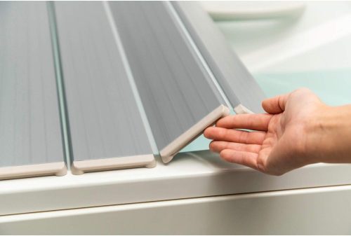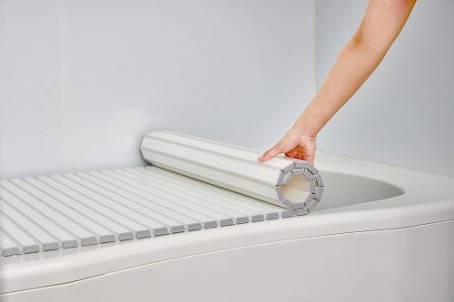シャッター式は、くるくると巻いて開閉するタイプの風呂ふたです。軽量な製品が多く、スムーズに開閉しやすいのがメリット。使用しないときは丸めて立てかけておきやすいのがポイントです。