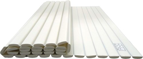 従来の塩化ビニル製やABS製に比べて30%軽量化したPP樹脂製のシャッター式の風呂ふたです。力を入れずに巻けて開閉が簡単。75cm×8m巻のサイズフリーカット仕様で、カッターナイフで希望寸法に合わせて切り離し可能です。