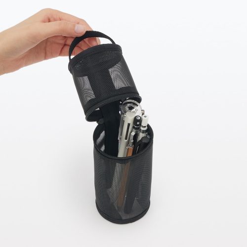 ナイロンメッシュ素材を採用しており、軽量で通気性も良好。中身が見えるため、必要なペンをすぐに見つけられます。取っ手付きで持ち運びやすく、カバンからの出し入れもスムーズに行えます。