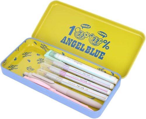 2000年代に人気を博したジュニアブランド「エンジェルブルー」のキャラクターが描かれた缶ペンケースです。鮮やかなブルーを基調としたかわいいデザインと、ブリキ感のレトロな雰囲気が魅力。ナルミヤブランドが好きな方へのプレゼントにもおすすめです。