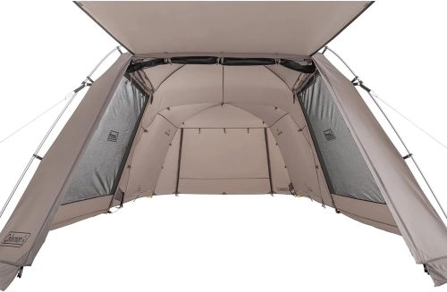 ファミリーやグループでのキャンプにおすすめのトンネル型2ルームテント。幅260×奥行620×高さ195cmの広々とした空間で、大人4人がゆったりと過ごせます。吊り下げ式のインナーテントを採用しており、設営がスムーズに行えるのが特徴です。