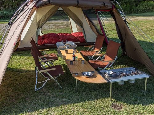 2ルームテントには、「◯人用」など収容可能な人数が記載されています。リビングにチェアやテーブルを設置するケースも多いため、ゆったり過ごせるよう使用人数+1人を目安に選ぶのがおすすめです。