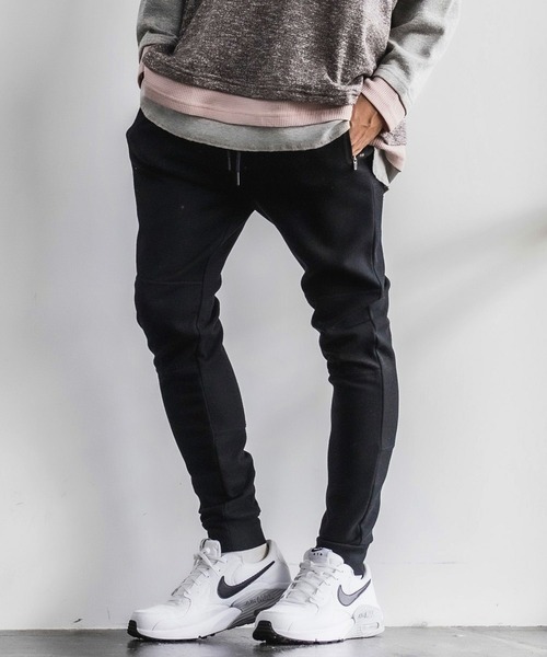 スウェットタイプのスキニーは、リラックス感がありつつもスタイリッシュに見えるのが魅力。脚にぴったりと沿う細身のデザインながら、ラフになりすぎないのがポイントです。