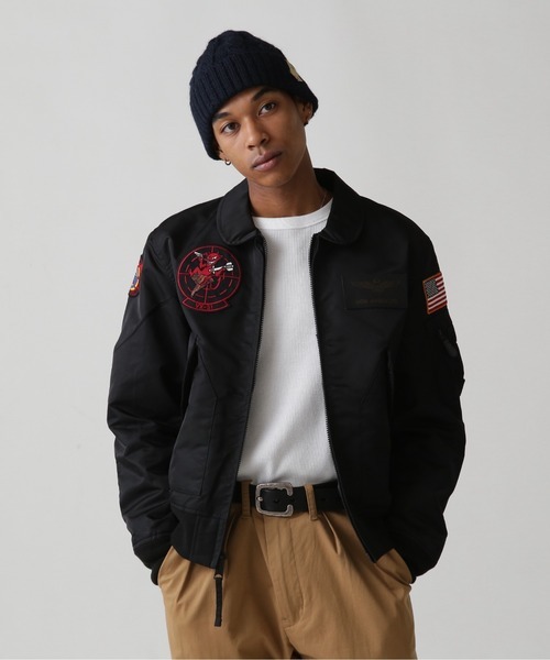 右胸には「DUST DEVILS」、右袖には「TOP GUN」卒業記念のパッチを配置しています。さらに、左胸にも米海軍のウイングマークなどをデザイン。遊び心あふれるアウターが欲しい方におすすめです。