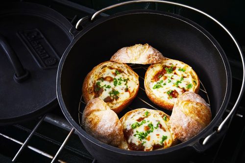 1枚の鋼板から作られており、衝撃や温度変化に強く割れにくいのが特徴。アウトドアシーンはもちろん、家庭のガスコンロやIH調理器でも使えます。手軽にダッチオーブン料理を楽しみたい方におすすめのモデルです。