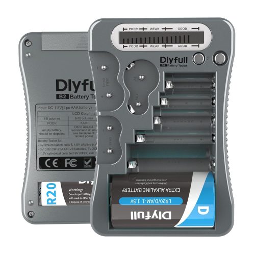 調整可能なスライダーで、電池のサイズにあわせて簡単にセット可能。測定する電池自身の電力で駆動するため、外部電源は不要です。家庭内の電池をまとめて管理したい方に適しています。
