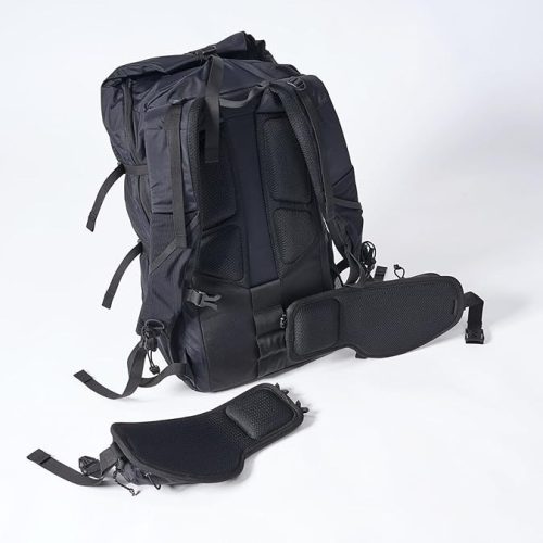 大型のフロントパネルとサイドベルトが備わっているリュックです。不定形な道具などを携行するときに役立ちます。サイドベルトを使って容量を0~55Lの間で調節できるのも特徴です。