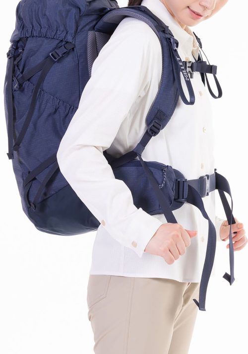 安定したフィット感を実現する登山用リュック。ショルダーストラップが肩幅やショルダーアングルに合わせて柔軟に変形するため、幅広い方にフィットします。また、高さ調整できるチェストストラップや、荷重バランスを調整できるストラップなどを備えているのも特徴です。