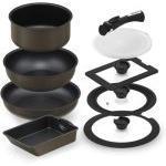 3点固定システムにより片手で簡単に取っ手の着脱が可能。取っ手を外せばオーブンやテーブル、冷蔵庫にもそのまま移せて調理の幅が広がります。全9点をコンパクトに重ねて収納できるため、キッチンの省スペース化にもおすすめです。