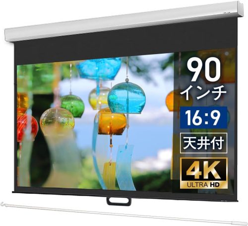 購入者からは「画面が非常にフラットで歪みがない」「視野角が広くどの角度からでも映像の輪郭がシャープ」と好評です。天井に収納できるため普段の生活スペースを圧迫せず、本格的なホームシアター環境を整えたい方におすすめです。