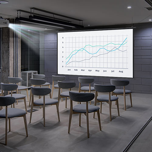 映画・ドラマ鑑賞から、ゲーム、会議やセミナーまで幅広い場面で活躍するのも特徴です。プライベートルームでの大画面エンターテインメントを楽しみたい方や、オフィス・会議スペースへの導入を検討している方におすすめのモデルです。