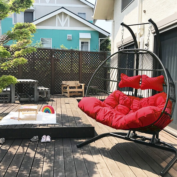 心地よい揺れでゆったりと座れるハンギングチェアは、庭やベランダでのくつろぎ時間にも向いています。屋外で使用する場合は、雨に濡れても劣化しにくい防水加工を施した製品がおすすめです。