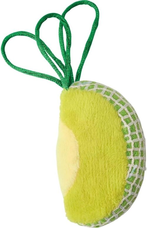 デンタルケアができると謳っている、メロン型の猫用おもちゃ。コットンメッシュ素材を採用しています。また、カシャカシャと鳴る音が猫の好奇心を刺激するのも特徴です。