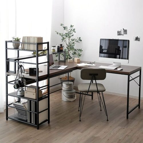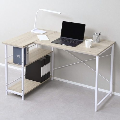 L字デスクのなかには、サイドラックやキャビネットが一体になったモデルもあります。オープンラック付きのモデルは書籍やファイルを手の届く場所に収納しやすく、デスク周りを整理しやすいのが特徴です。デスクトップPCの本体を収納できるモデルもあります。