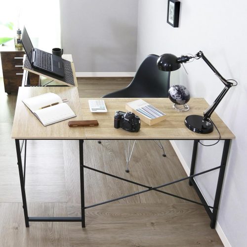 部屋の角を有効活用できるL字型のデスク。メラミン加工のパーティクルボードを使用し、耐久性とお手入れのしやすさを実現しています。ナチュラルな木目調デザインでさまざまなインテリアに馴染みやすいのも魅力です。