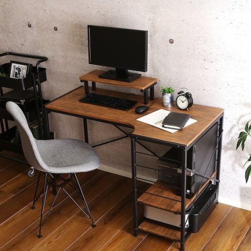 110cmの広い天板で快適に作業しやすいのが魅力。天板は左右どちらにも組み換えできるため、部屋のレイアウトに合わせてカスタマイズ可能です。ラック部の棚板は高さ調整でき、パソコン本体の収納やプリンターの設置に便利。おしゃれな見た目と機能性を両立させたい方におすすめです。