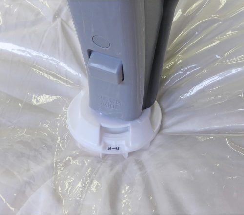 バルブ式の場合は掃除機で空気を吸い出し、手押し式の場合は体重を掛けたり、袋をくるくると丸めたりして空気を抜きます。