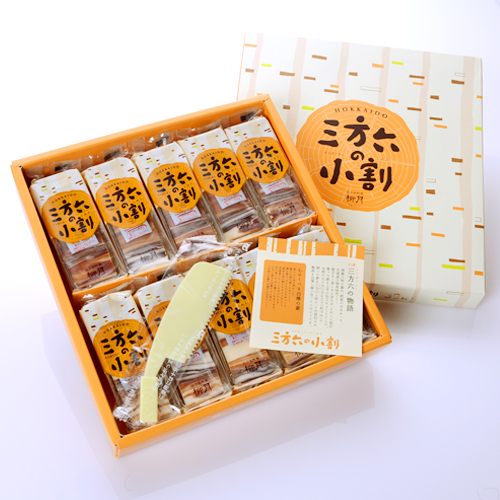 北海道の銘菓としても知られるバームクーヘンです。円形ではなく棒状をしているのは、北海道開拓時代の薪をイメージしているため。「三方六」という商品名も、薪のサイズが三方・六寸だったことから来ています。