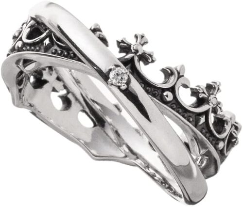 甲丸リングとクラウンリングの2つを、無限大に見立てたデザインのシルバーアクセサリーです。複雑な組み合わせが、手元をおしゃれに飾ります。ボリューム感も適度にあり、指に視線を集めたい際におすすめです。