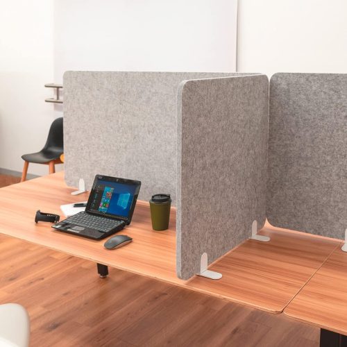 素材に高密度なフェルトを採用しているパネルタイプの吸音材。卓上に簡単に仕切りをつくれるおすすめのアイテムです。付属のスタンドで立てて使用できます。