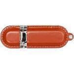 艶やかな革素材を使った、おしゃれなUSBメモリです。ハリのある革製のボディには、しっかりとしたステッチを施しており、高級感があります。金属素材で、ストラップホールやキャップ周りにアクセントを効かせているのもおしゃれです。